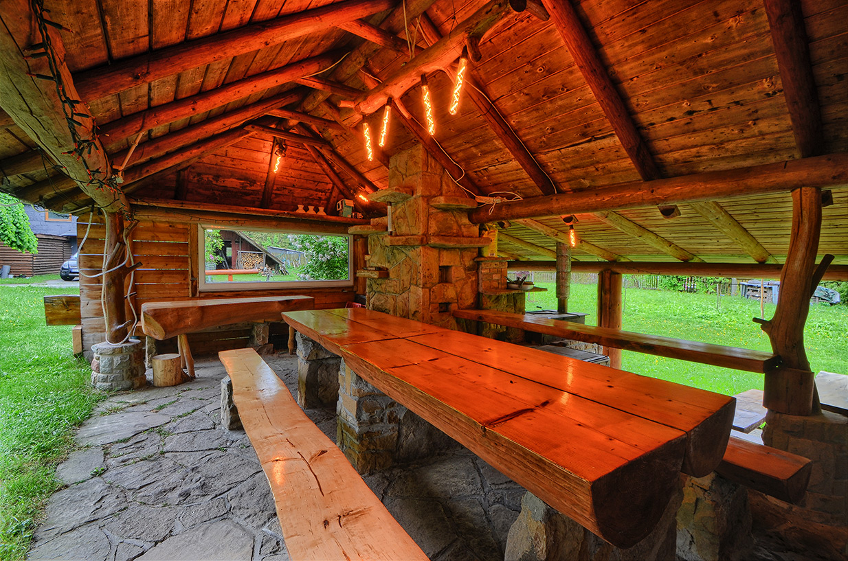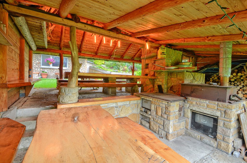 Ogród: Na terenie naszego obszernego ogrodu znajduje się altana z dachem, wyposażona w specjalne miejsce do grillowania. Duże ławki, paleniska oraz zawsze dostępne drewno gwarantują doskonałe warunki do organizacji biesiad, bez względu na panujące warunki atmosferyczne.